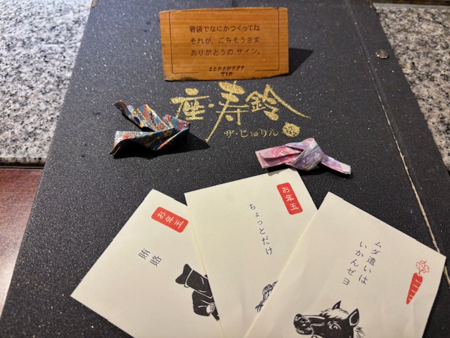 箸袋でジャパニーズチップ.....感謝・・霧島市